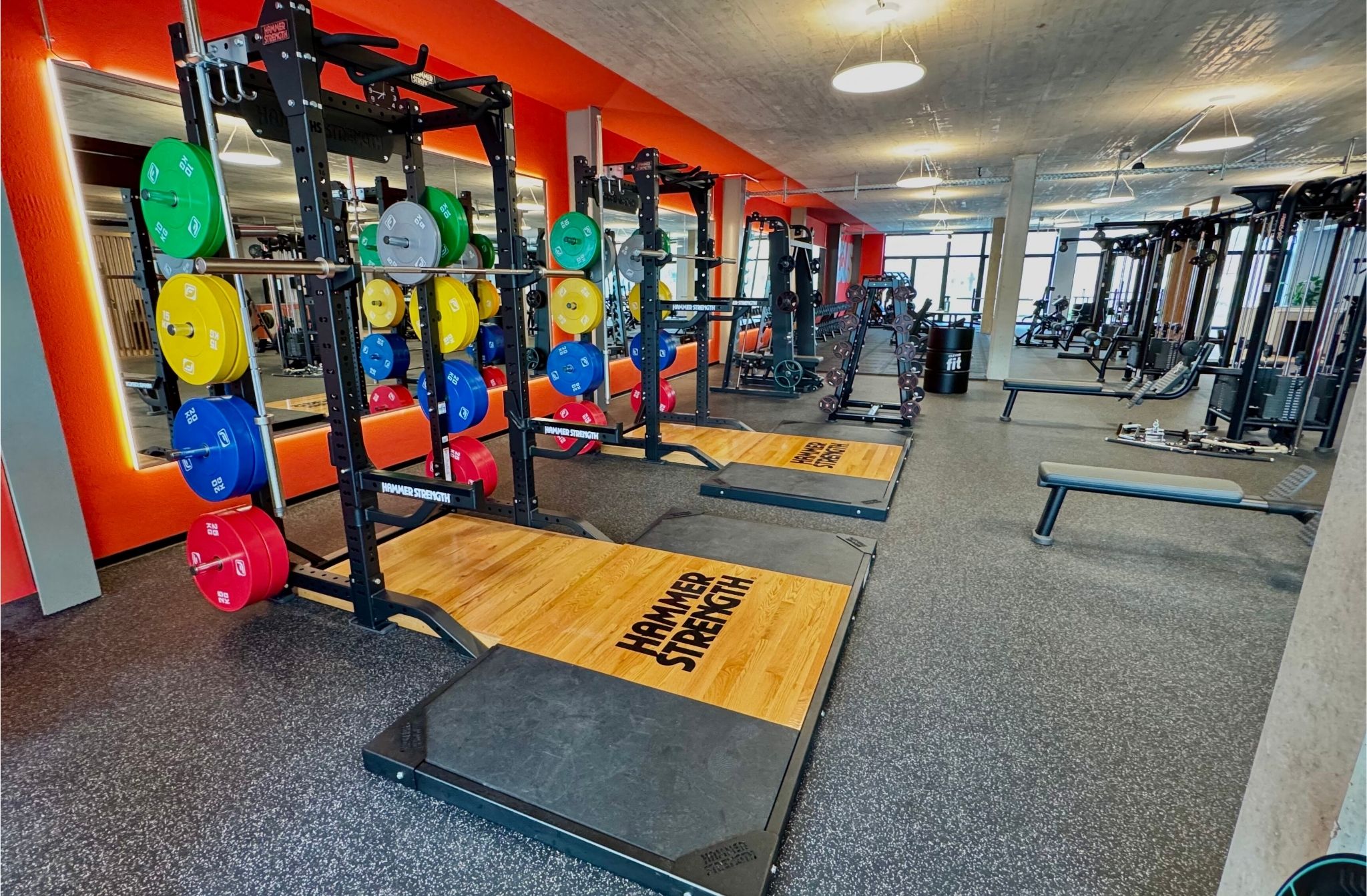 - Topmoderne Ausstattung: In unserem neuen Studio findest Du hochmoderne Fitnessgeräte von Technogym sowie einen digitalen EGYM Zirkel – Dein Personaltrainer mit Erfolgsgarantie. Zusätzlich erwartet Dich ein Freihantelbereich auf 500 m² vom Weltmarktführer Hammer Strength.
